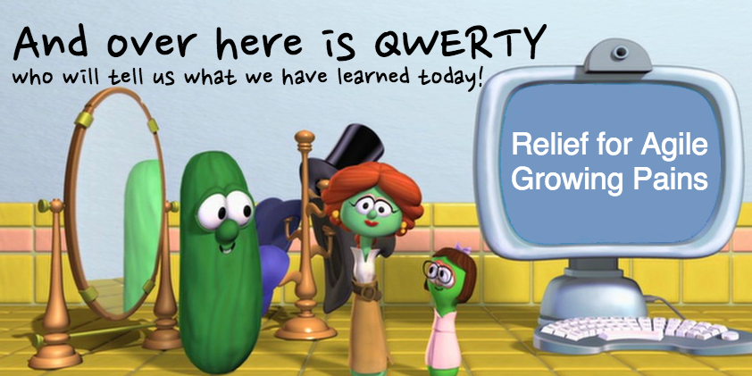 As I was pondering how to recap my recent seminar on the topic “Relief for Agile Growing Pains,” I had a tune pop into my head. It was from the children’s show “Veggie Tales.” At the end of the show, Larry the Cucumber and Bob the Tomato look to their desktop computer friend “QWERTY” to provide the Lesson of the Day. You know what that means – you guys are getting a QWERTY-esque blog!