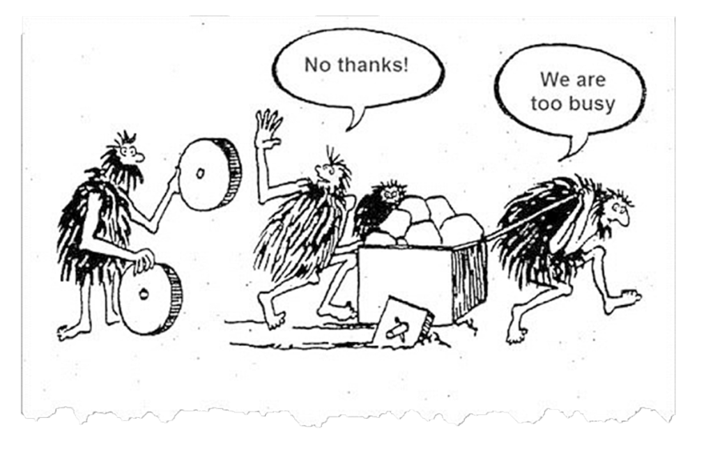 When you read this word do you think about radical ideas such as the internet, the iPhone, or even better yet coffee (I had to get that in there). But if you dive into innovation, we find that most of what is considered some of the greatest innovation was taking something mundane or a difficult part of life and creating something to improve the situation! Many times new clients will mention that they need to “transform” their organization. As we dive into the “why’s” of this, we find out that what has happened is that they have stopped truly iterationally innovating! They have spent so much time in keeping the lights on or focused on the tradition of their work that even improvements to critical methods haven’t been implemented in years. I’m reminded of this cartoon: