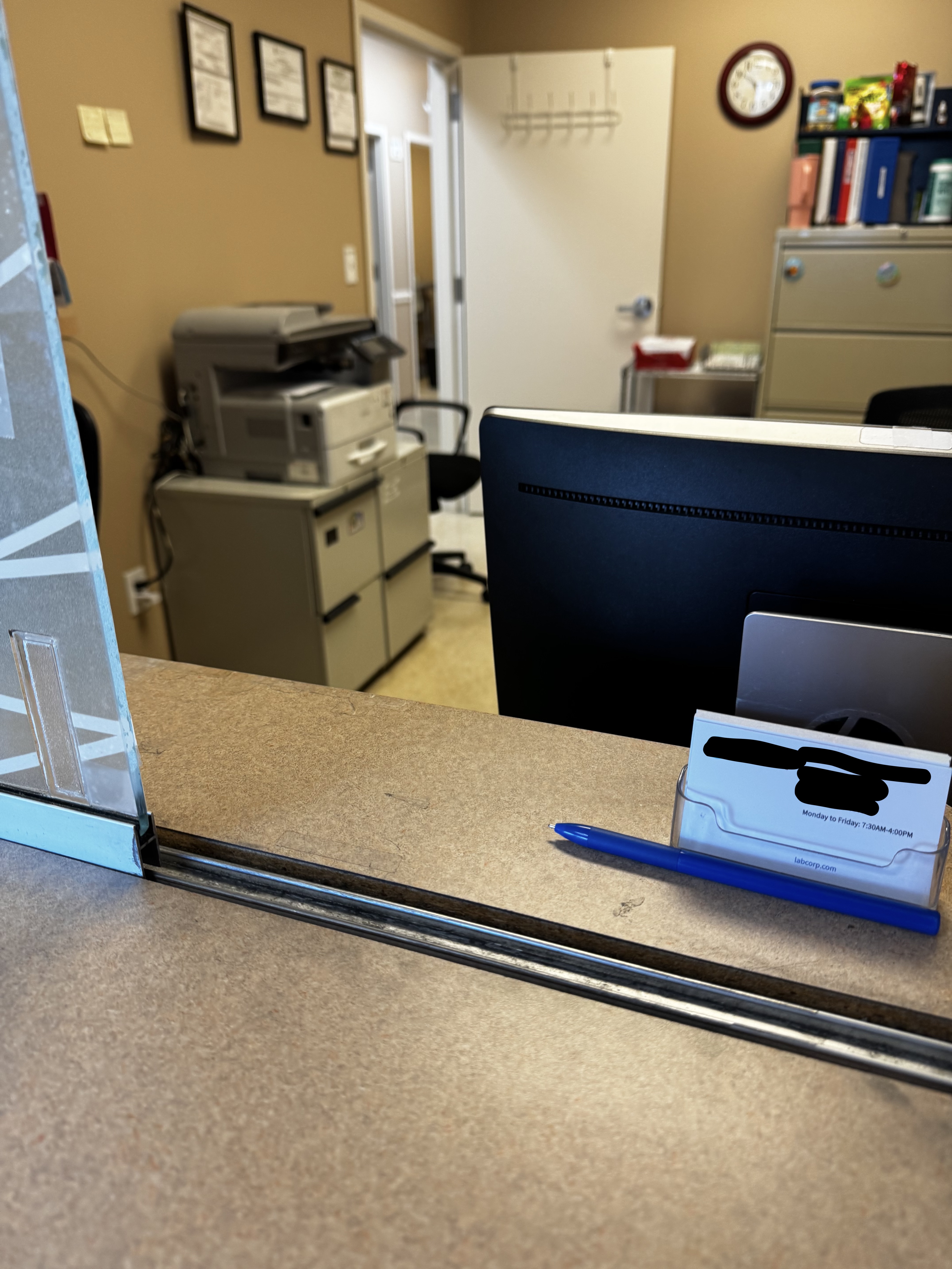 No one. At 10:15am. With a broken kiosk and no instructions for those coming in. So I wait. Another 10 minutes. I kindly say, “excuse me?” And no answer. Finally, a phlebotomist comes to the door to call back the older couple and I ask for assistance, specifically if she knows what is happening with my order. She kindly says that they are moving as fast as they can.